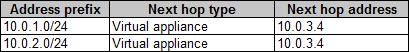 RT1という名前のルートテーブルを作成します。 RT1はSubnet1とSubnet2に関連付けられており、次の表のルートが含まれています。