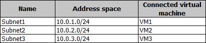 Subscription1には、次の表のサブネットを持つVNet1という名前の仮想ネットワークが含まれています。