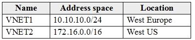 質問61 VNet1とVNet2という名前の2つの仮想ネットワークを含むAzureサブ...