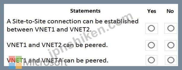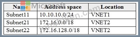 質問121 VNET1、VNET2、およびVNET3という名前の3つの仮想ネットワークを...