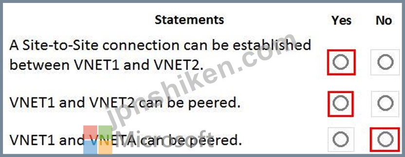 次の各ステートメントについて、ステートメントがtrueの場合は[はい]を選択します。それ以外の場合は、[いいえ]を選択します。