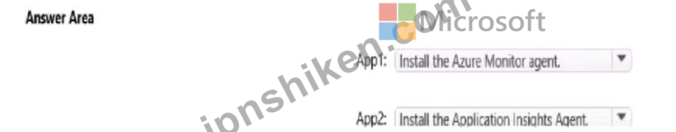 Azure Application Insightsを使用して、アプリのパフォーマンスと使用状況を監視する必要があります。ソリューションでは、アプリケーションコードの変更を最小限に抑える必要があります。