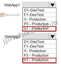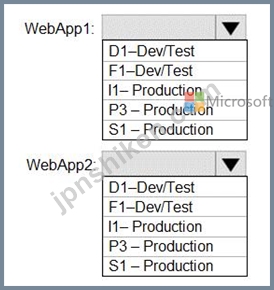 各Webアプリの展開に使用できる最もコストの低い計画は何ですか?回答するには、回答領域で適切なオプションを選択します。