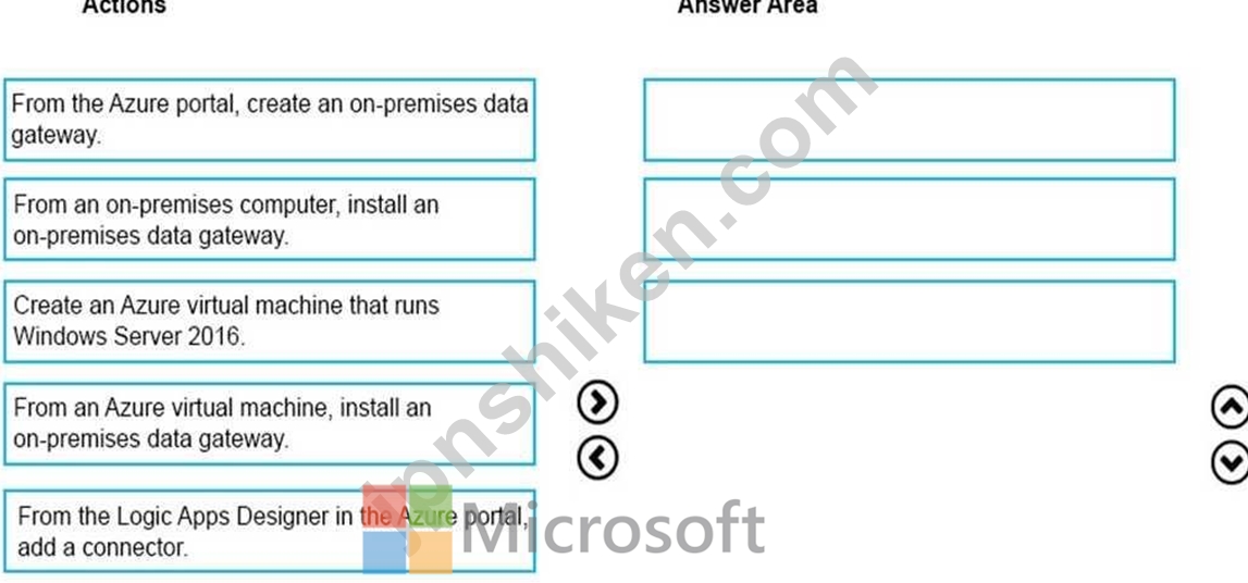 To access data sources on premises from your logic apps, you can create a data gateway resource in Azure so that your logic apps can use the on-premises connectors. Box 1: From an on-premises computer, install an on-premises data gateway. Before you can connect to on- premises data sources from Azure Logic Apps, download and install the on-premises data gateway on a local computer.