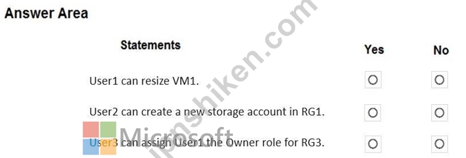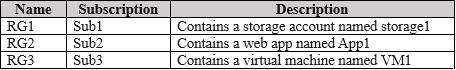 質問3 RG1 という名前のリソース グループがあります。RG1 には、stora...