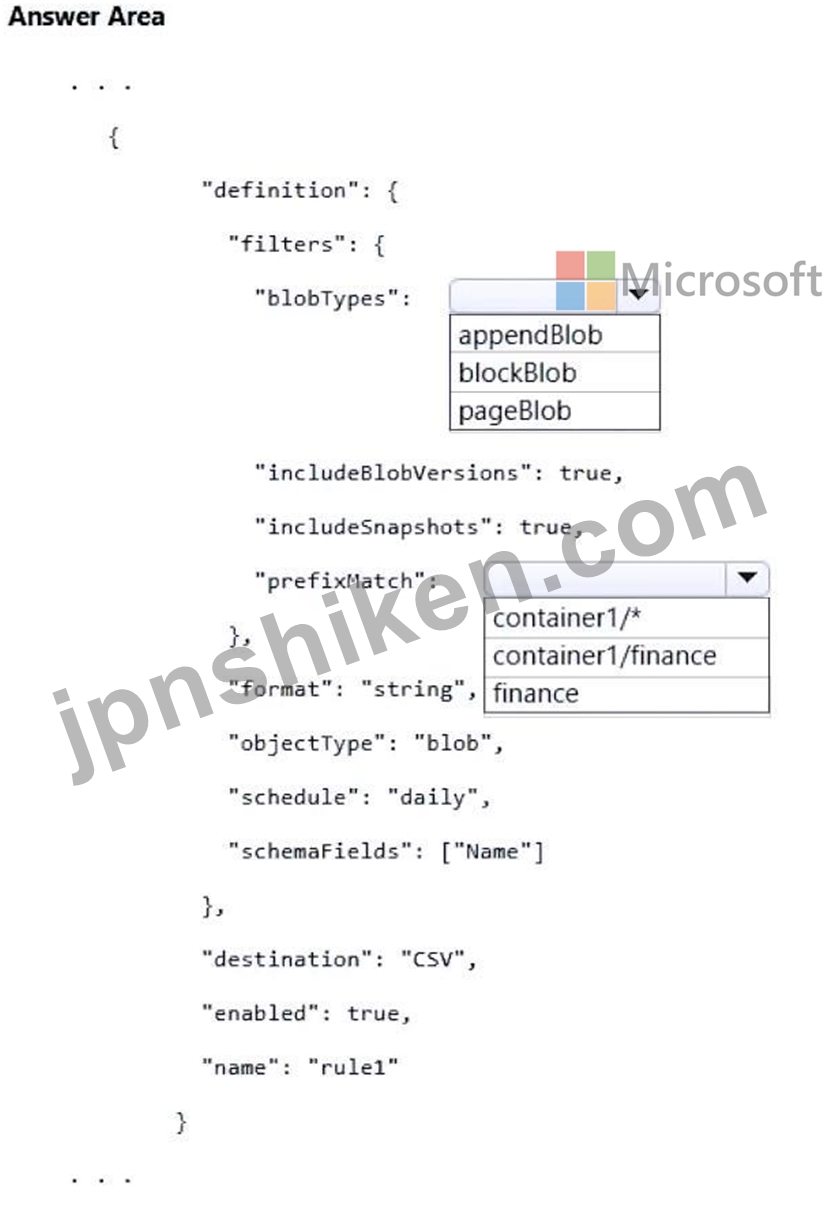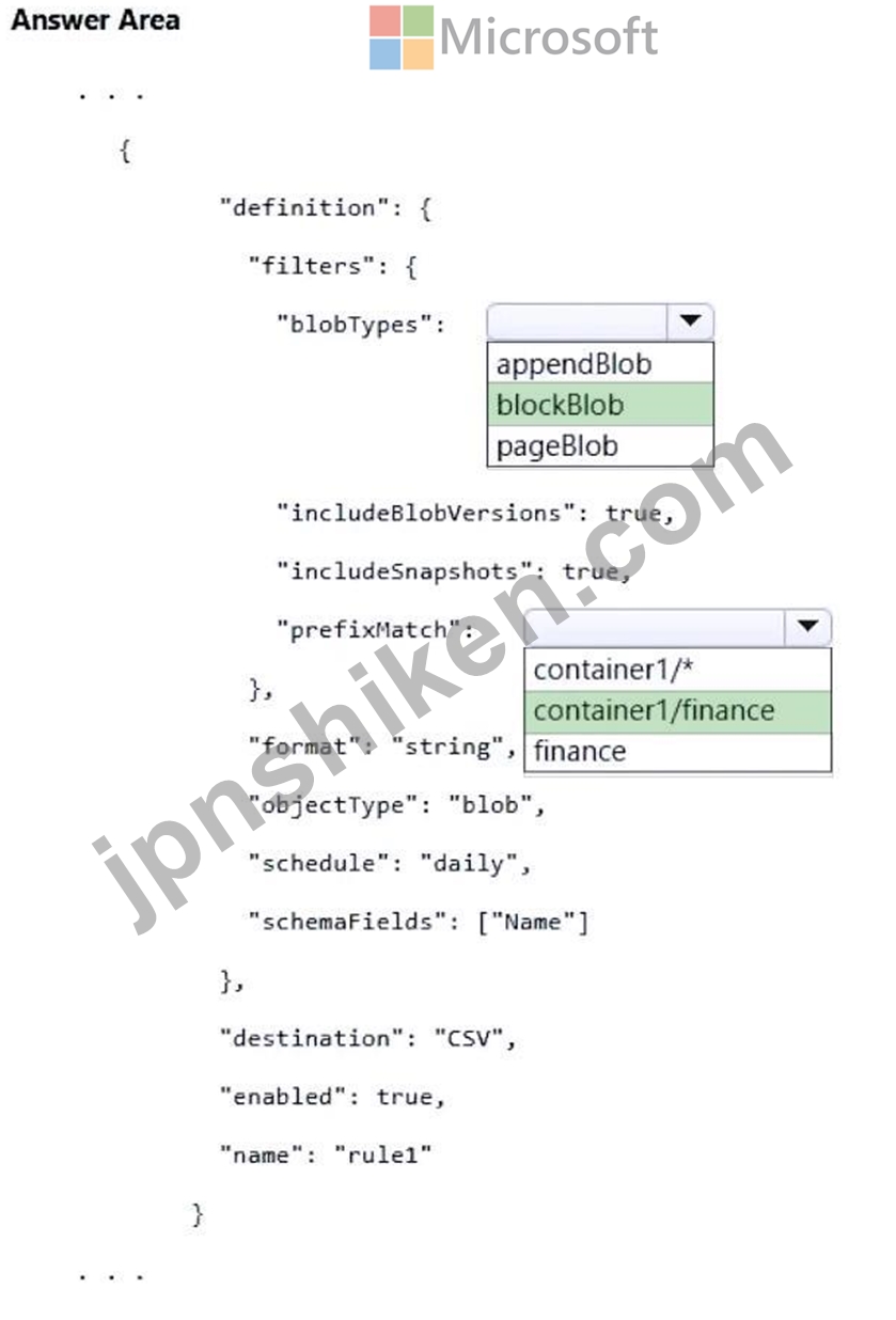 名前が finance という単語で始まる BLOB のみが、container1 に CSV ファイルとして毎日保存されるようにする必要があります。