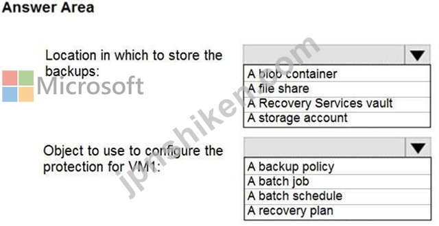 - Leave the default policy. This backs up the VM once a day at the time specified, and retains backups in the vault for 30 days.