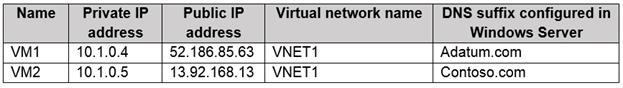 Since both VM1 & VM2 are in same Vnet1 and the Vnet1 is liked under adatum.com domain (Private DNS Zone->Setting->virtual network links).