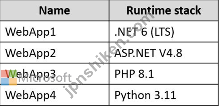質問83 次の表に示すAzure Webアプリを作成する予定です。 (Exhibit) We...