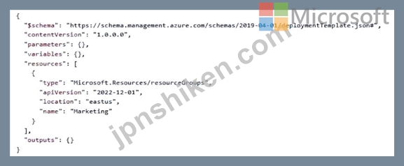 New-AzSubscriptionDeployment is the correct answer, as the New-AzResourceDeployment is used to deploy in an existing resource group. You can use New-AzSubscriptionDeployment(which is an alias for New-AzDeployment) to deploy resources at subscription level. "The New-AzResourceGroupDeployment cmdlet adds a deployment to an existing resource group" https://learn.microsoft.com/en-us/powershell/module/az.resources/new- azresourcegroupdeployment?view=azps-10.4.1 https://learn.microsoft.com/en-us/azure/azure-resource-manager/templates/deploy-to- subscription?tabs=azure-powershell