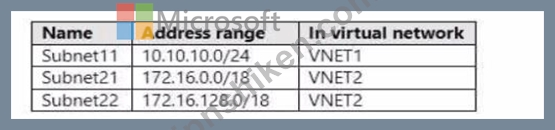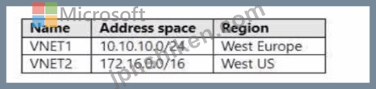 質問42 次の表に示す Azure 仮想ネットワークがあります。 (Exhibit) VN...