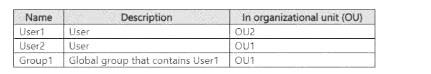 Microsoft Entra Connect 同期を使用して OU1 を AD DS ドメインから Microsoft Entra テナントに同期する Azure サブスクリプションがあります。