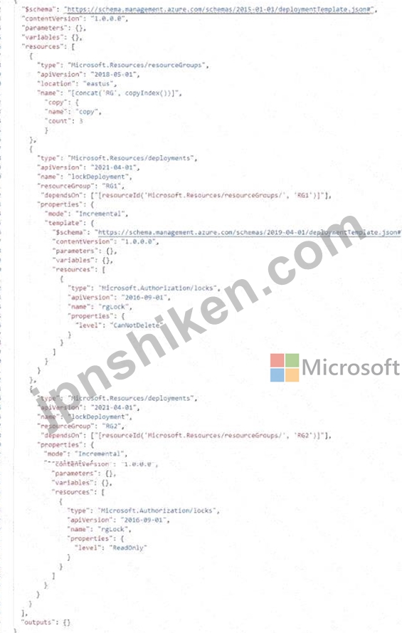 However, if you enter RG2 as the value for the resourceGroupName parameter, then the cmdlet will fail with an error. This is because RG2 already exists in your subscription and you cannot create a resource group with the same name as an existing one. Therefore, you cannot deploy a virtual machine to RG2 using this template and cmdlet.
