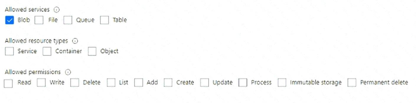 To generate a shared access signature (SAS) that meets the requirements, you should enable the following three settings: