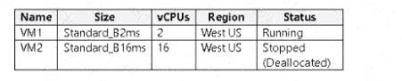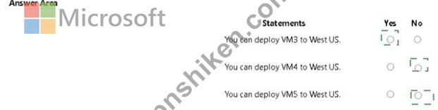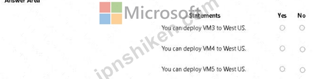 質問54 次の表に示すクォータを含む、Subscription1 という名前の Azure...