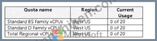 次の表に示すクォータを含む、Subscription1 という名前の Azure サブスクリプションがあります。