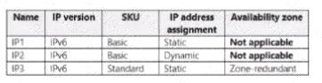 次の表に示すパブリック IP アドレスを使用する Azure サブスクリプションがあります。 パブリック Azure Standard Load Balancer を作成する必要があります。 どのパブリック IP アドレスを使用できますか?