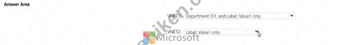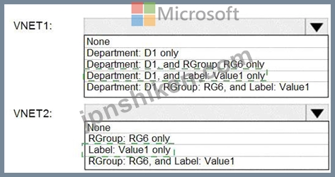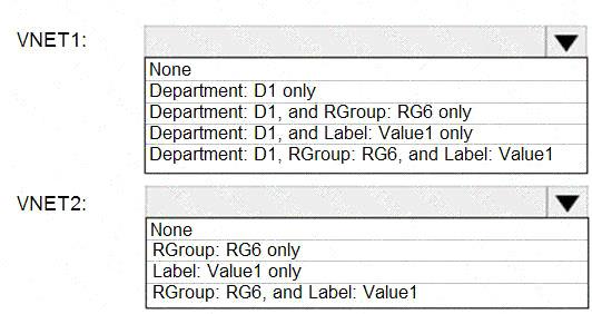 VNET1 と VNET2 にはどのタグが適用されますか? 回答するには、回答領域で適切なオプションを選択してください。