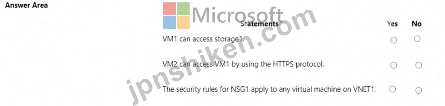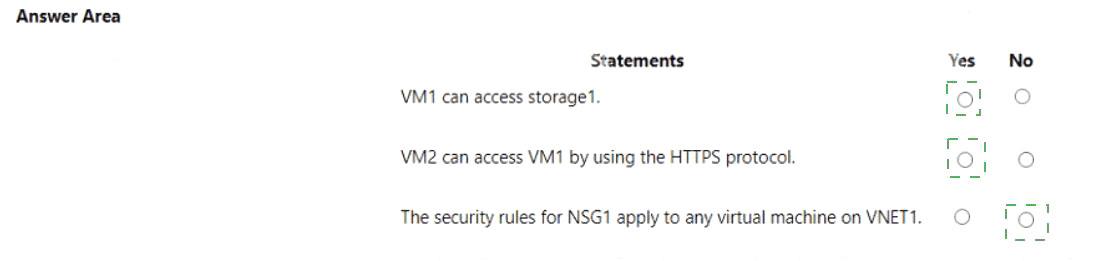 Yes - VM1 can access the Storage account because there is nothing blocking it the on the virtual network.