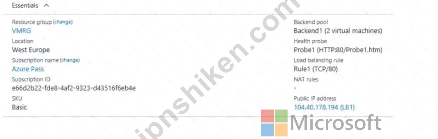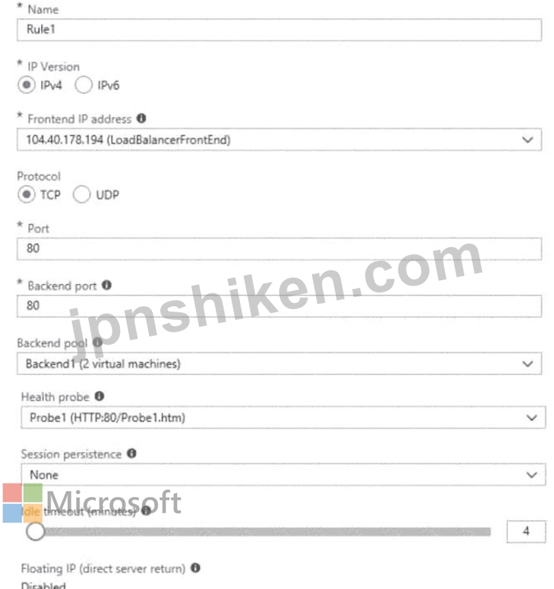 質問152 次の表に示すパブリック ロード バランサーを含む Azure サブス...