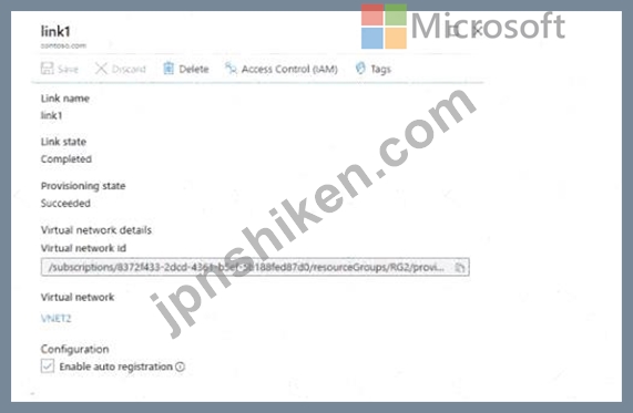 Auto registration is enabled for private Azure DNS zone named contoso.com.