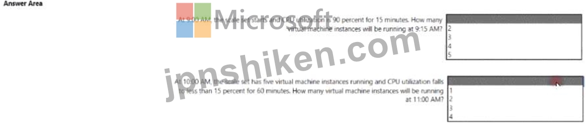 Initial starts 2 VM's 15 minutes have passed. at 10 minutes 1 VM was added we now have 3 VM's. Cool down is 5 Minutes before another 10 minute wait cycle starts so the answer is 3.