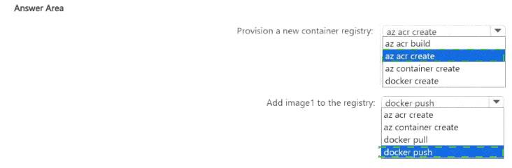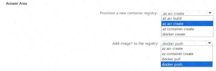 新しい Azure コンテナー レジストリをプロビジョニングし、image1 をレジストリに追加する必要があります。