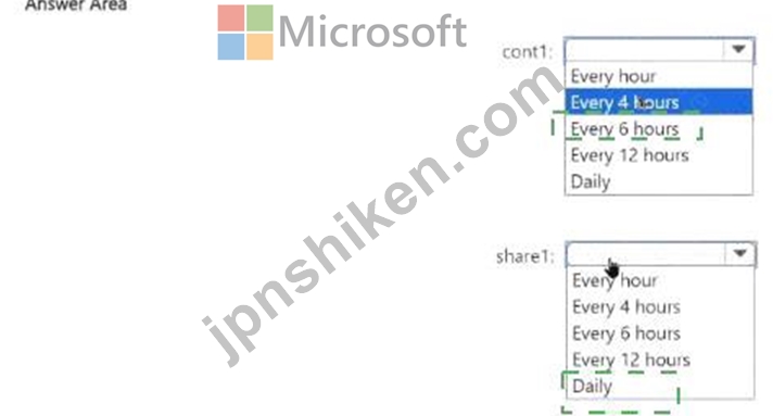 質問85 cont1 と share1 の技術要件を満たすように Azure Backup を構成...