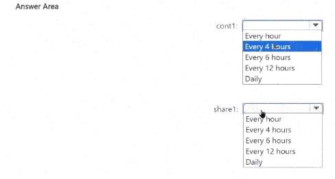 cont1 と share1 の技術要件を満たすように Azure Backup を構成する必要があります。