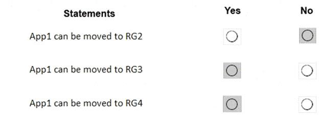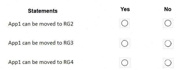 App1 present in RG1 and in RG1 there is no lock available. So you can move App1 to other resource groups, RG2, RG3, RG4.