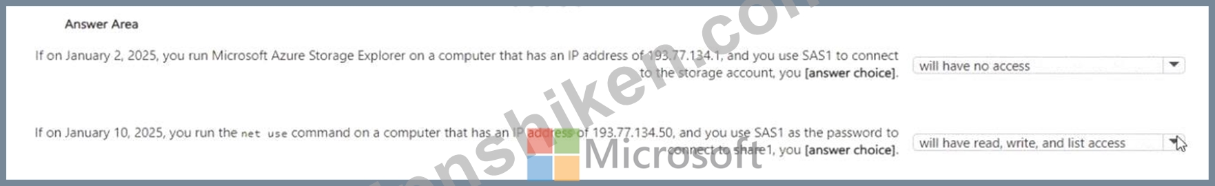 質問142 storage1 という名前の Azure ストレージ アカウントに対して Az...
