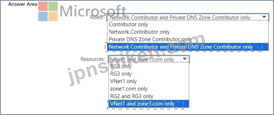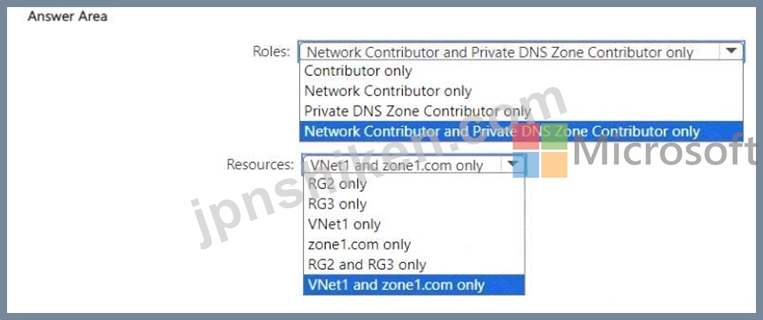 User1 にはどのロールを、どのリソースに割り当てる必要がありますか? 回答するには、回答領域で適切なオプションを選択してください。
