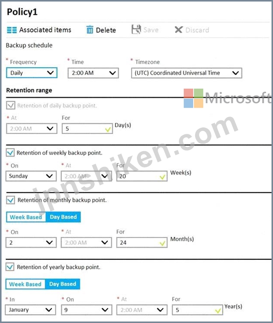 質問159 VM1 という名前の Azure 仮想マシンと、Vault1 という名前の Rec...