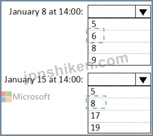 1 月 8 日と 1 月 15 日に利用できる回復ポイントはいくつありますか? 回答するには、回答領域で適切なオプションを選択してください。
