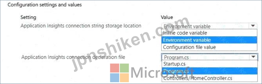 どの構成を使用する必要がありますか? 回答するには、回答領域で適切なオプションを選択してください。