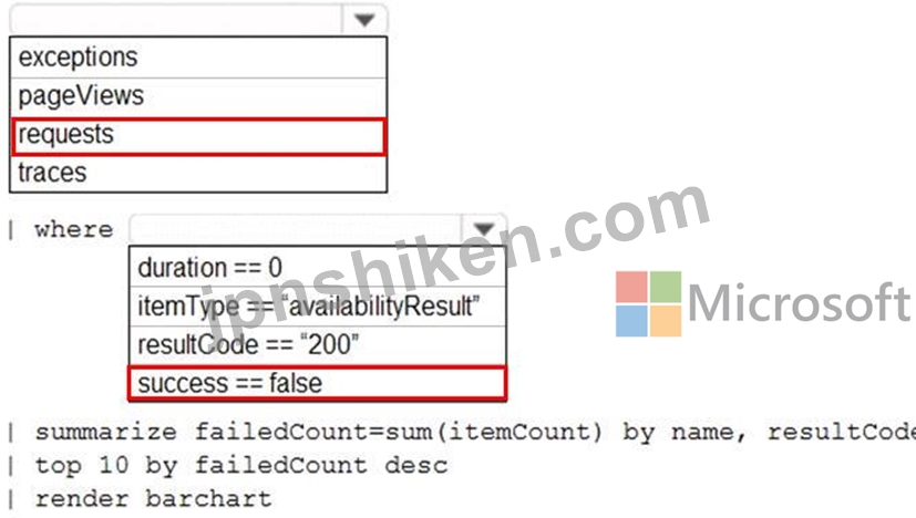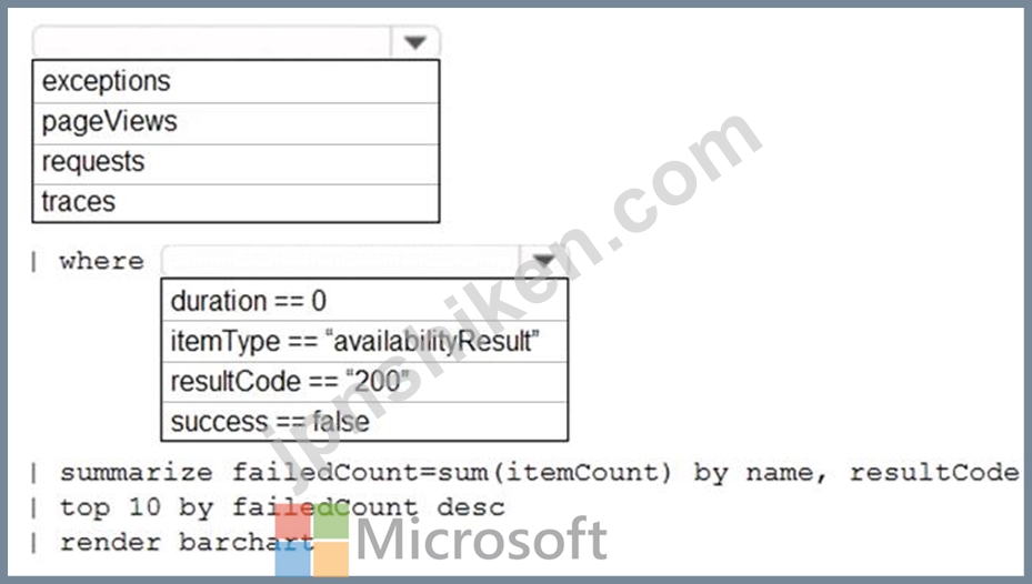 失敗したWebapp1の上位10ページの詳細を示すレポートを作成するには、AzureMonitorクエリを使用する必要があります。