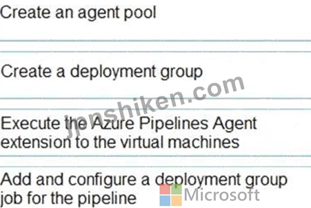 Step 3: Execute the Azure Pipelines Agent extension to the virtual machines Install the Azure Pipelines Agent Azure VM extension Step 4: Add and configure a deployment group job for the pipeline Tasks that you define in a deployment group job run on some or all of the target servers, depending on the arguments you specify for the tasks and the job itself.