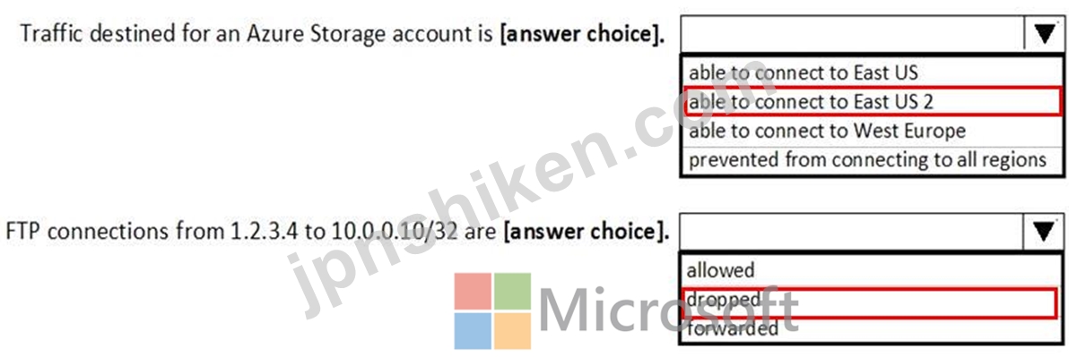 質問40 Sub2の仮想マシン間のネットワーク通信のセキュリティを評価して...