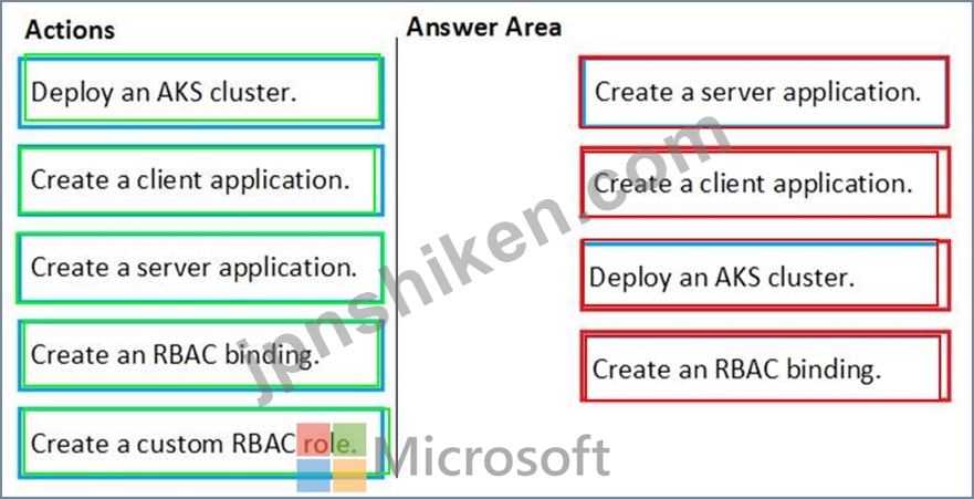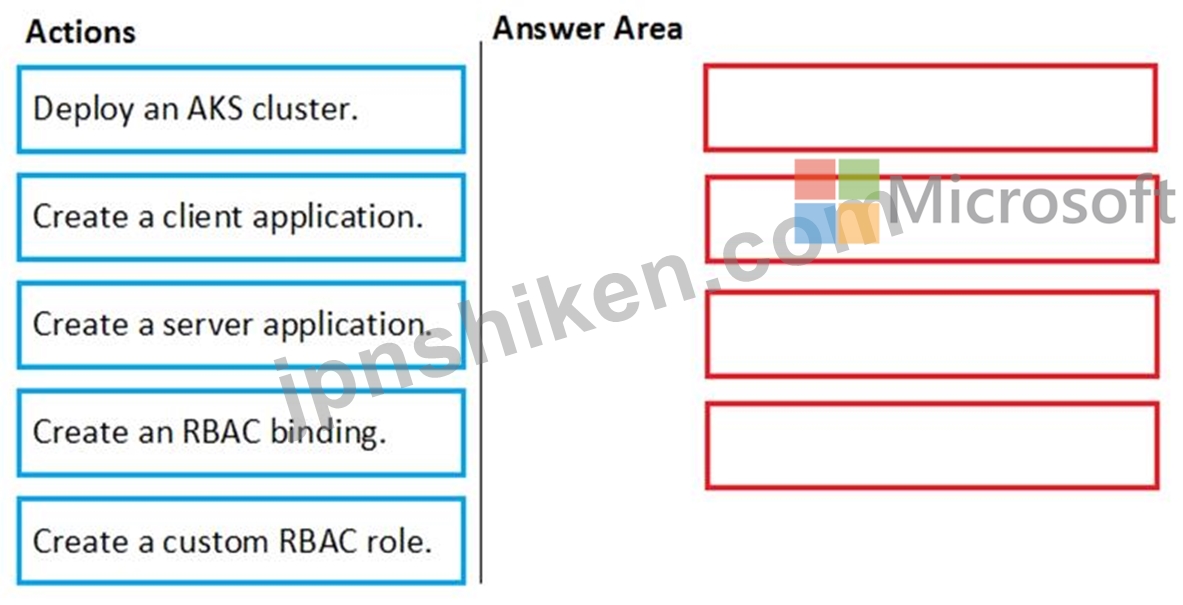 どの4つのアクションを順番に実行する必要がありますか? 回答するには、適切なアクションをアクションのリストから回答エリアに移動し、正しい順序に並べます。