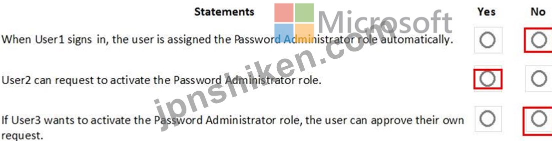 You assign users the Password Administrator role as shown in the following table.
