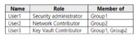 Azure Active Directory(Azure AD)にリンクされているAzureサブスクリプションがあります。テナントには、次の表に示すユーザーが含まれています。
