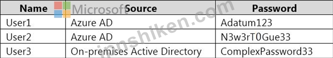 Azure ADテナントには、次の表に示すユーザーが含まれています。