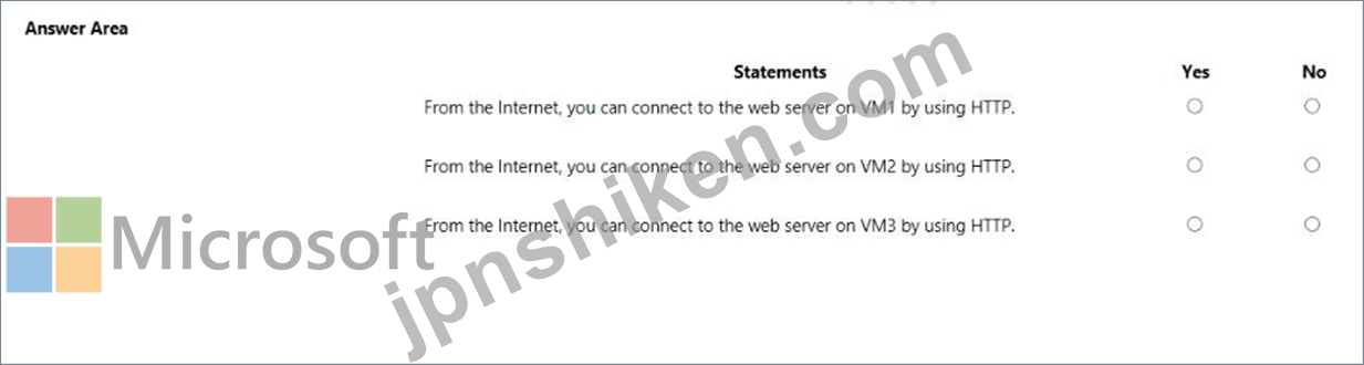 質問110 Sub2のVM1、VM2、およびVM3のセキュリティを評価しています。 以...