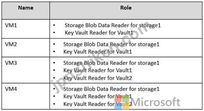 A user-assigned managed identity can be assigned to one or many resources. By using user-assigned managed identities, we can create just two managed identities: one with the permission requirements for VM1 and VM2 and the other with the permission requirements for VM3 and VM4.
