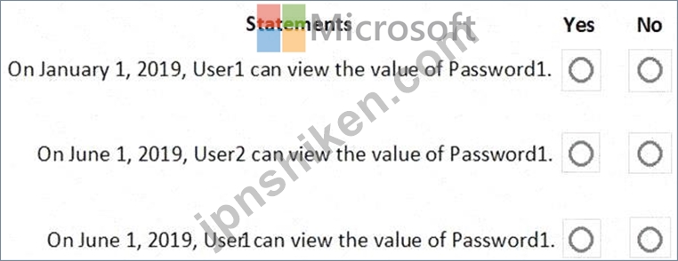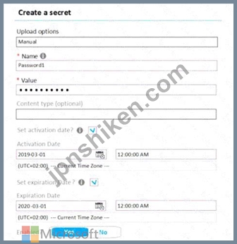 2019年1月1日に、Vault1でシークレットを作成します。シークレットは展示に示されているように構成されます。 ([展示]タブをクリックします。)