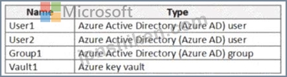 User1はGroup1のメンバーです。 Group1とUser2には、Vault1のKey Vault Contributorロールが割り当てられています。