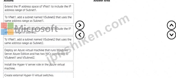 どの 5 つのアクションを順番に実行する必要がありますか? 回答するには、アクションのリストから適切なアクションを回答領域に移動し、正しい順序に並べます。