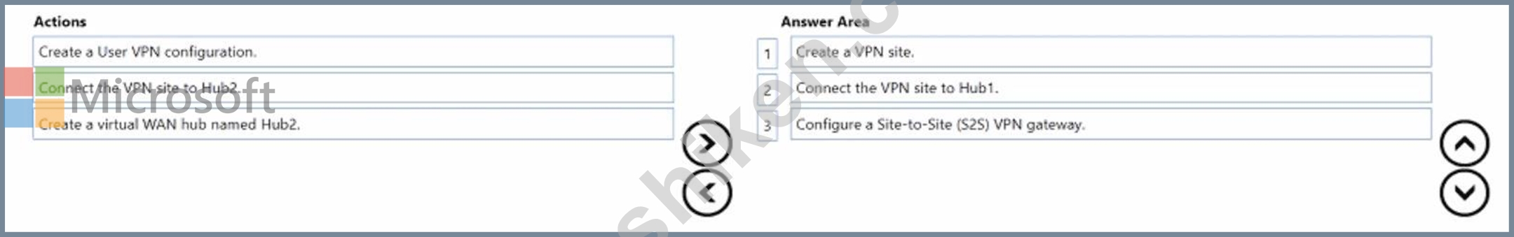 順番に実行する必要がある 3 つのアクションはどれですか。回答するには、適切なアクションをアクション リストから回答領域に移動し、正しい順序に並べます。