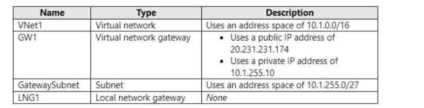質問67 VNetGwy1 という名前の仮想ネットワーク ゲートウェイを含む Azu...