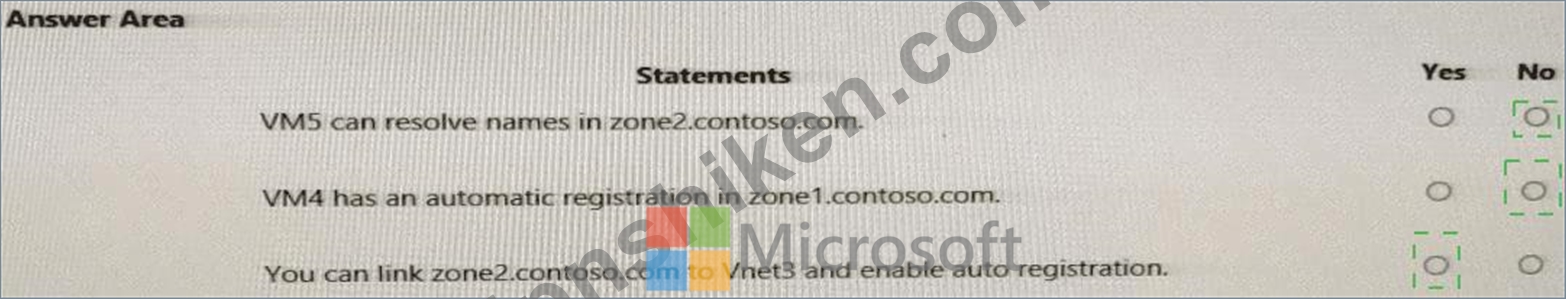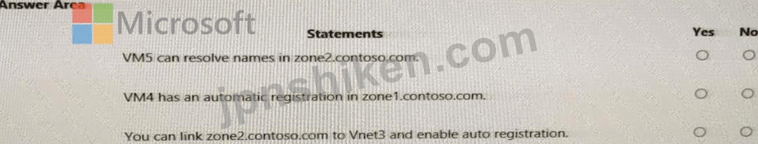 質問121 次の表に示す仮想ネットワークにリンクされた contoso.com とい...